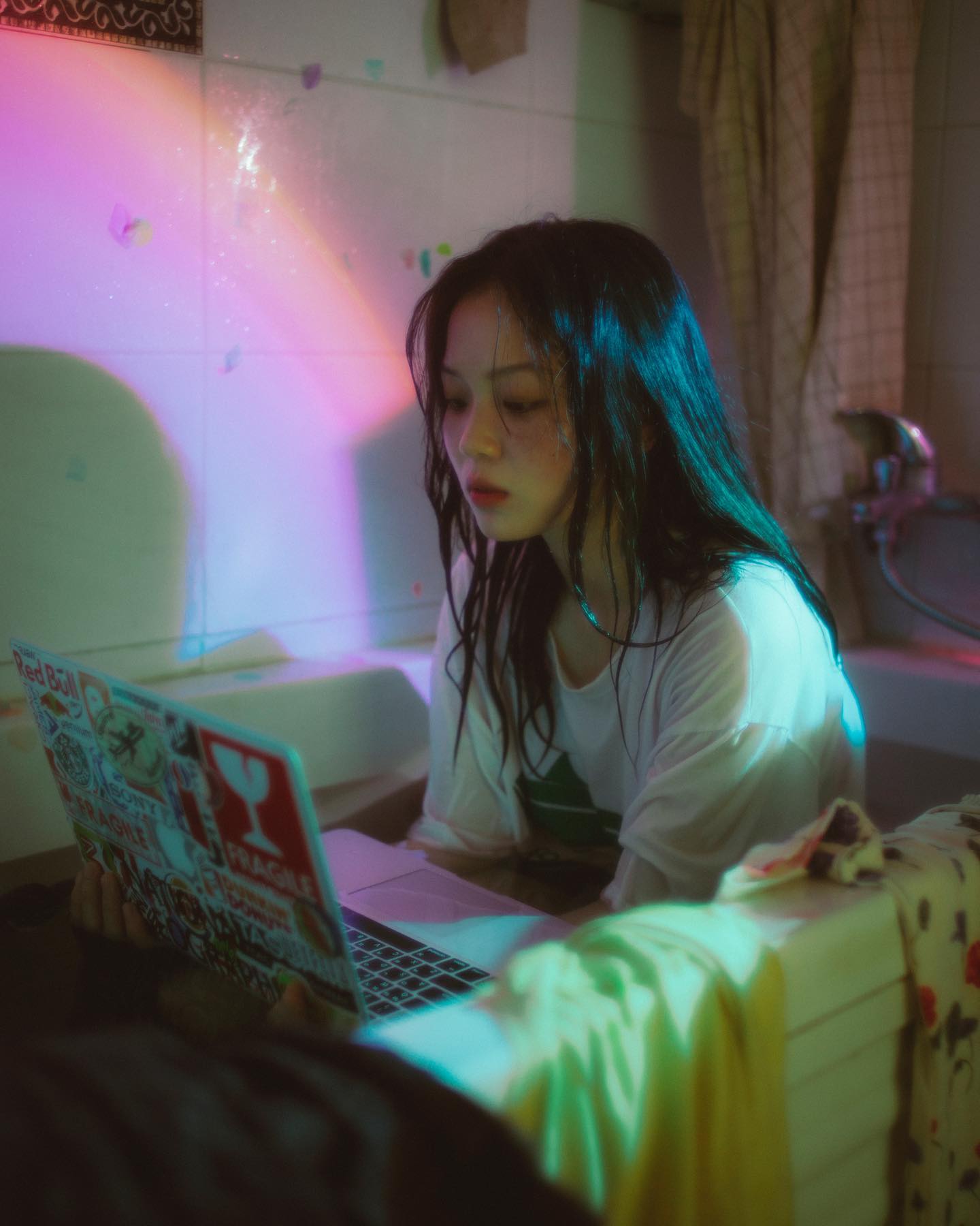 请访问作者Ins韩国摄影师jeehoowism的作品有一个很特别的点就是他拍出来的作品总有一种朦胧的感觉别有一番风味像是用了很大的光圈,背景虚化的厉害镜头上面应该是用了什么遮挡物,比如透明的塑料纸或者保鲜膜、纱等物品或者是在UV镜上涂抹了凡士林类的东西,让拍出来的照片有种特别的朦胧美,让他的作品独特而有魅力。